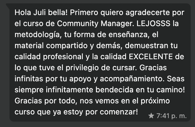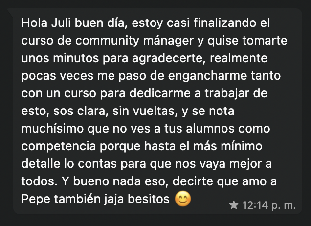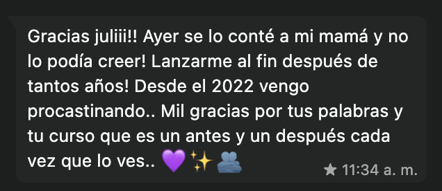 Más de 11.500 alumnas pasaron por la academia de cursos. Sus valoraciones de 5 estrellas y sus resultados reales son lo que le dan propósito a todo esto te comparto sólo algunos!